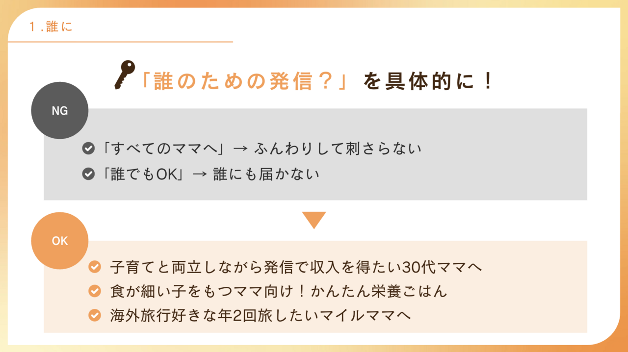 まほさんの講義で印象的だったのは、「誰に届けるか」を非常に具体化している点です!