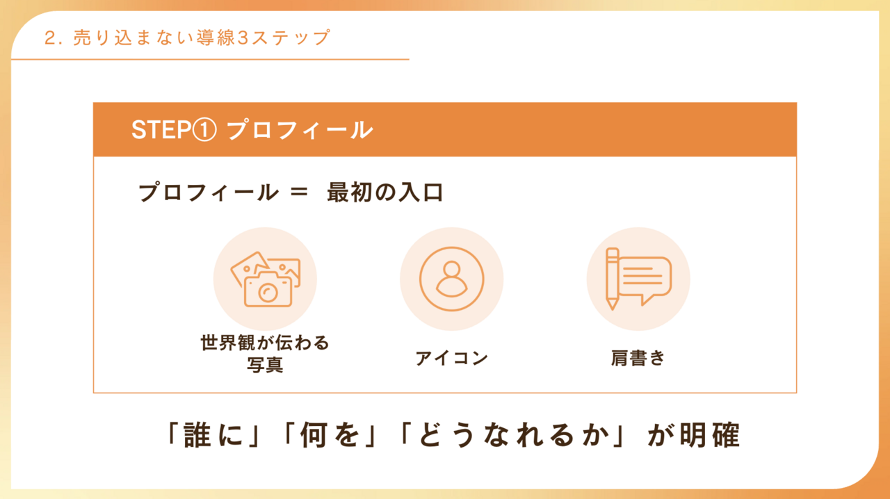 プロフィールの数行で「このアカウントをフォローすると、あなたの生活がどう良くなるか」を伝える必要があります。